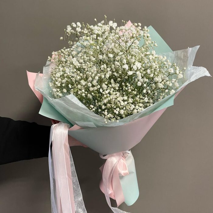 Гипсофила – 5 шт.Лента – 5 шт.Упаковка дизайнерская – 2 шт.Шар сердце – 1 шт.